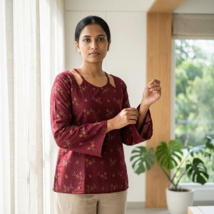 The front offers a minimal, clean look, while the back dori design creates a flattering shape without compromising comfort. Perfect for casual outings, workwear, or semi-festive occasions.