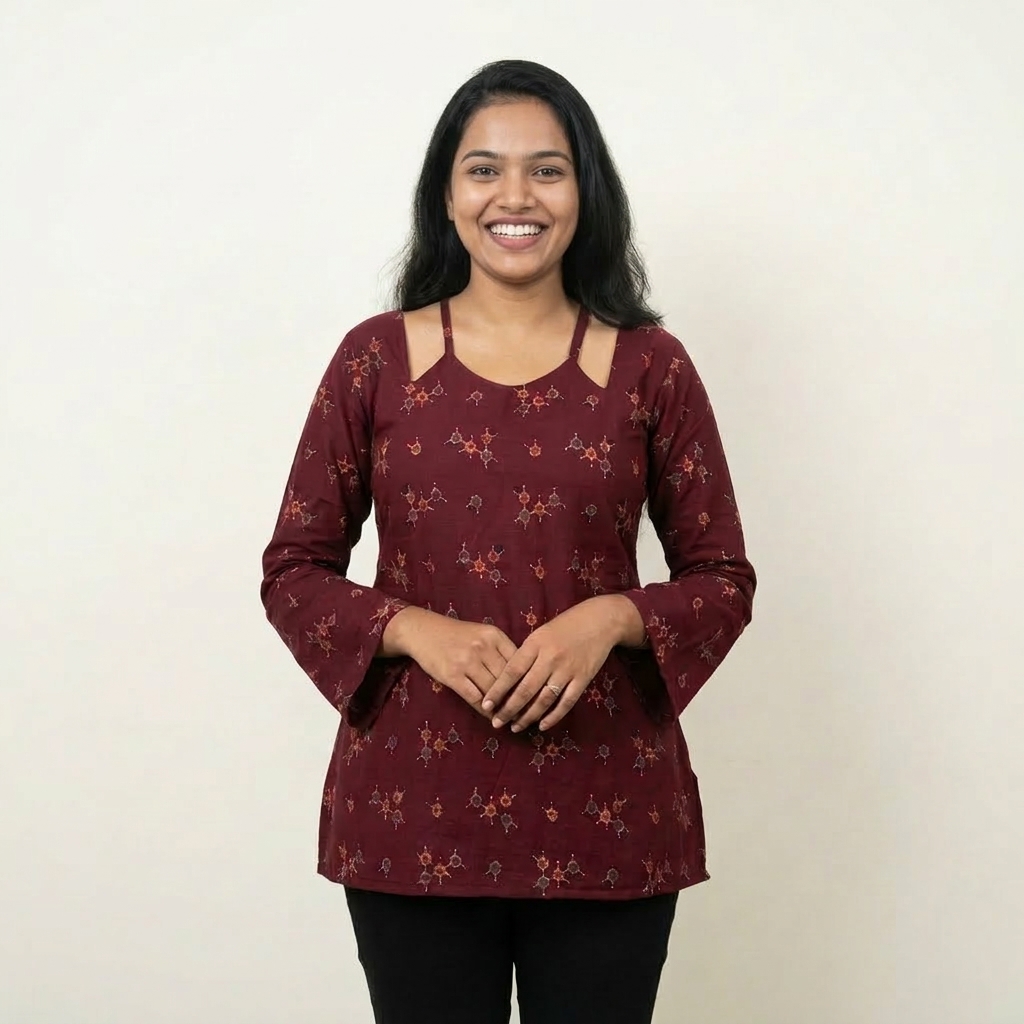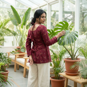 Elevate your everyday style with this elegant corset-style back dori short kurti. Designed with a modern silhouette, this kurti features a soft, breathable fabric and a stylish lace-up back detail that enhances the fit while adding a trendy touch.
